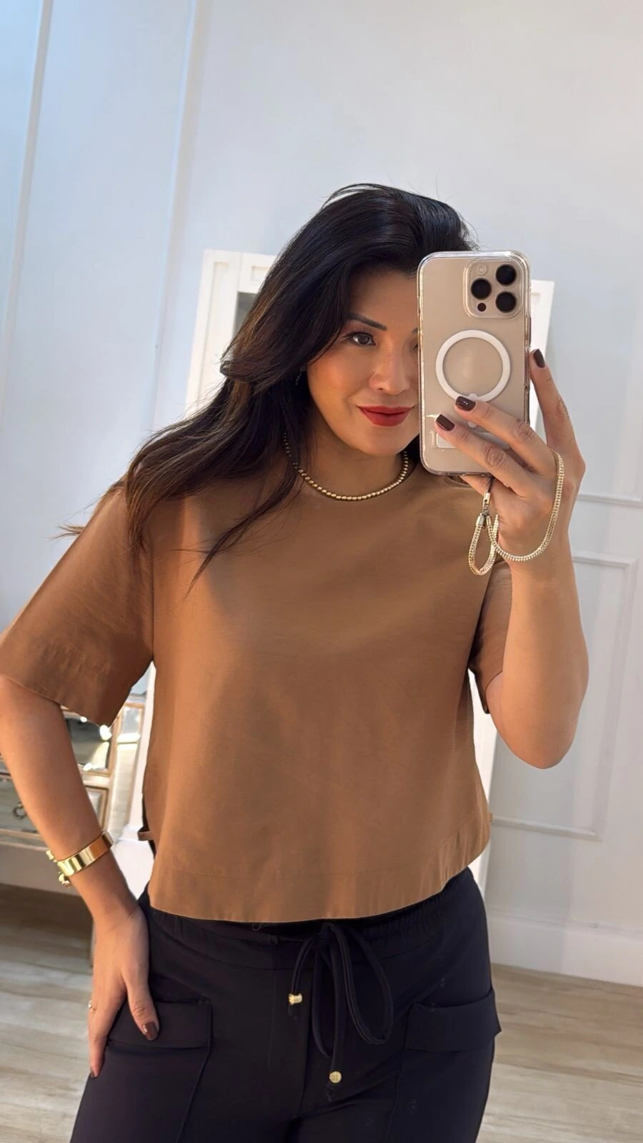Calça Cenoura Recorte Vazado No Barrado Catharina + Blusa Mangas 3/4 Catharina Marinho