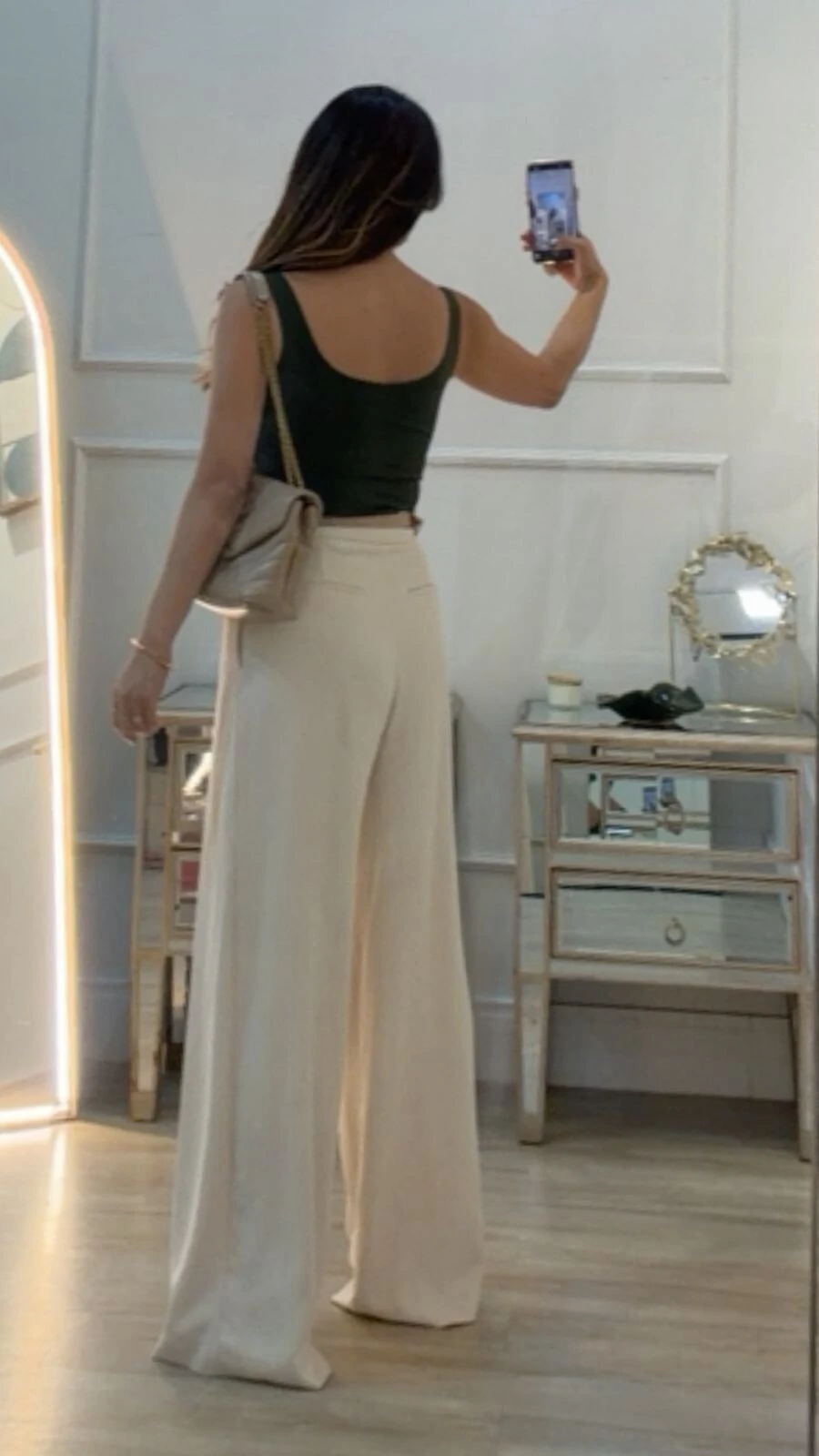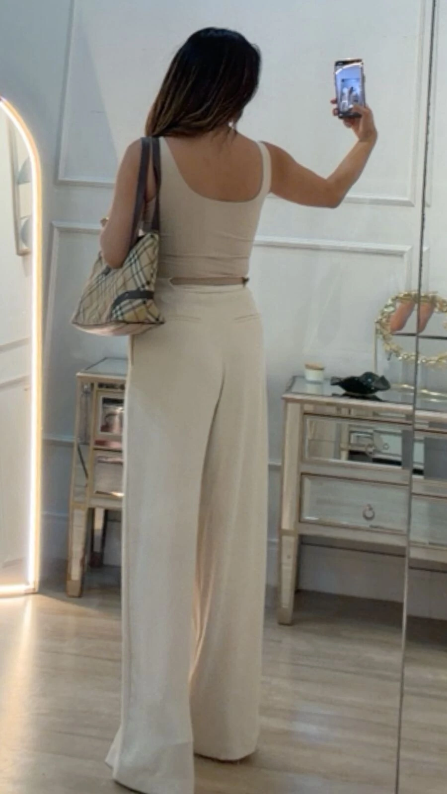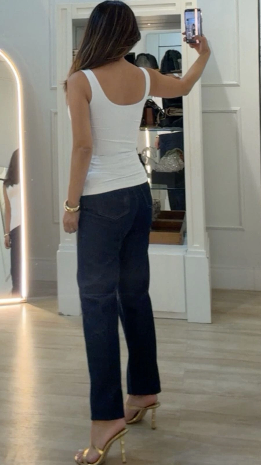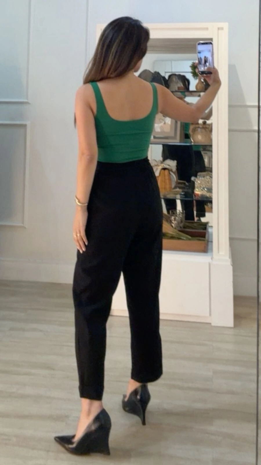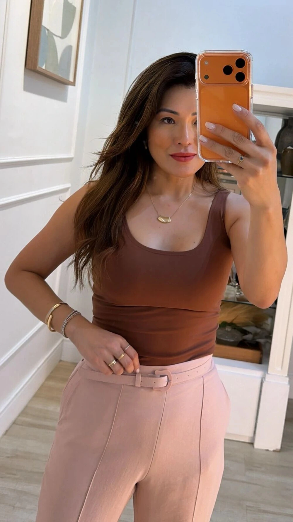 Regata confeccionada em malha. Possui decote em U, alças largas e pesponto.