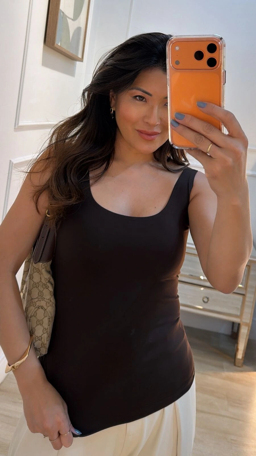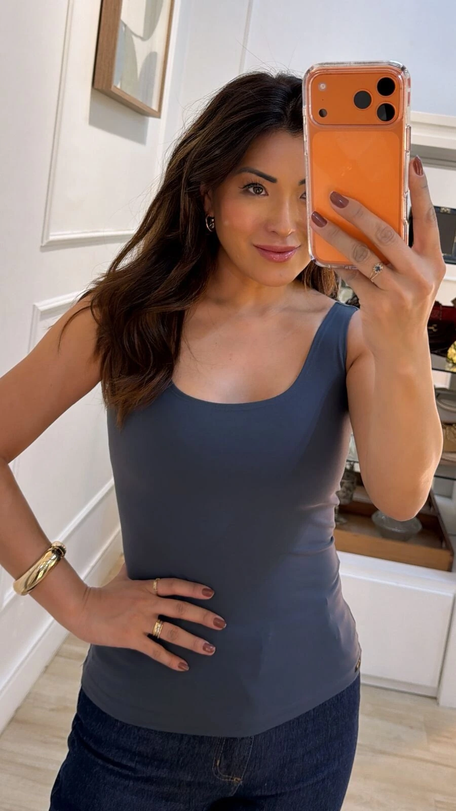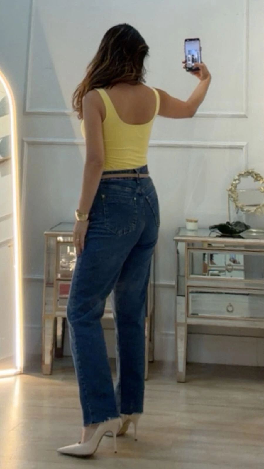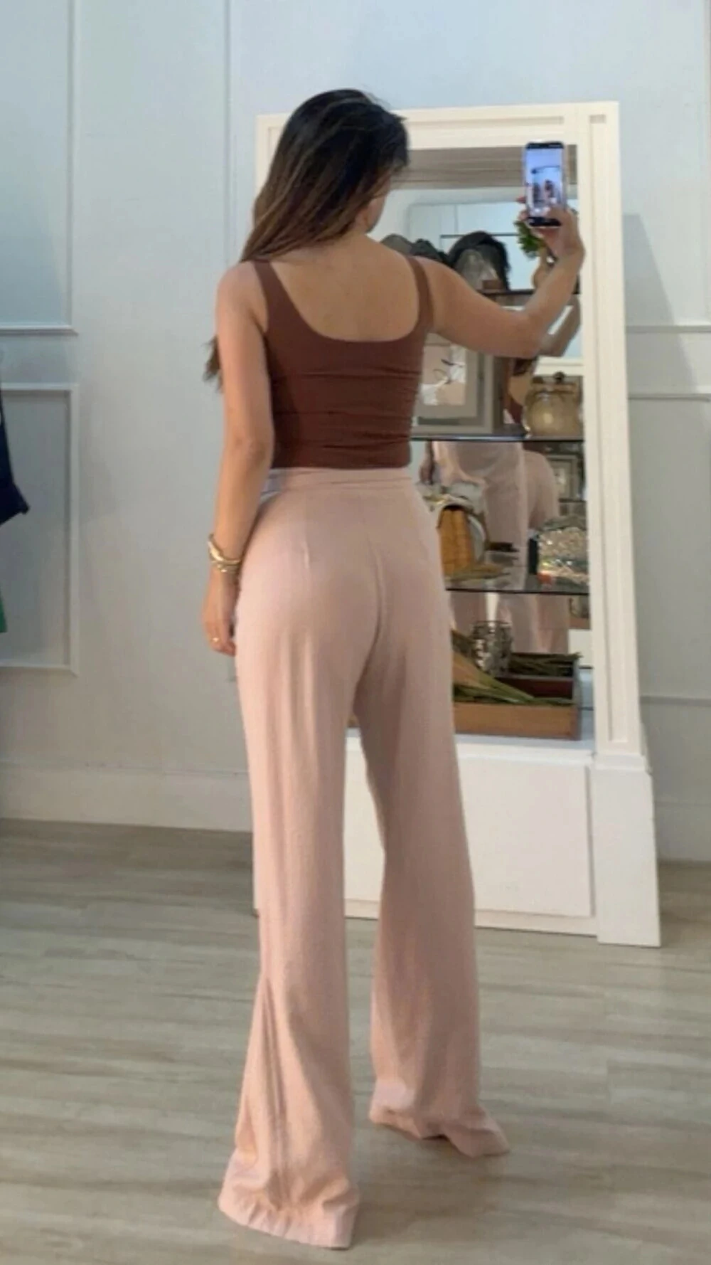 Regata confeccionada em malha. Possui decote em U, alças largas e pesponto.