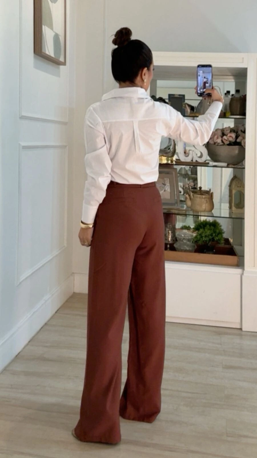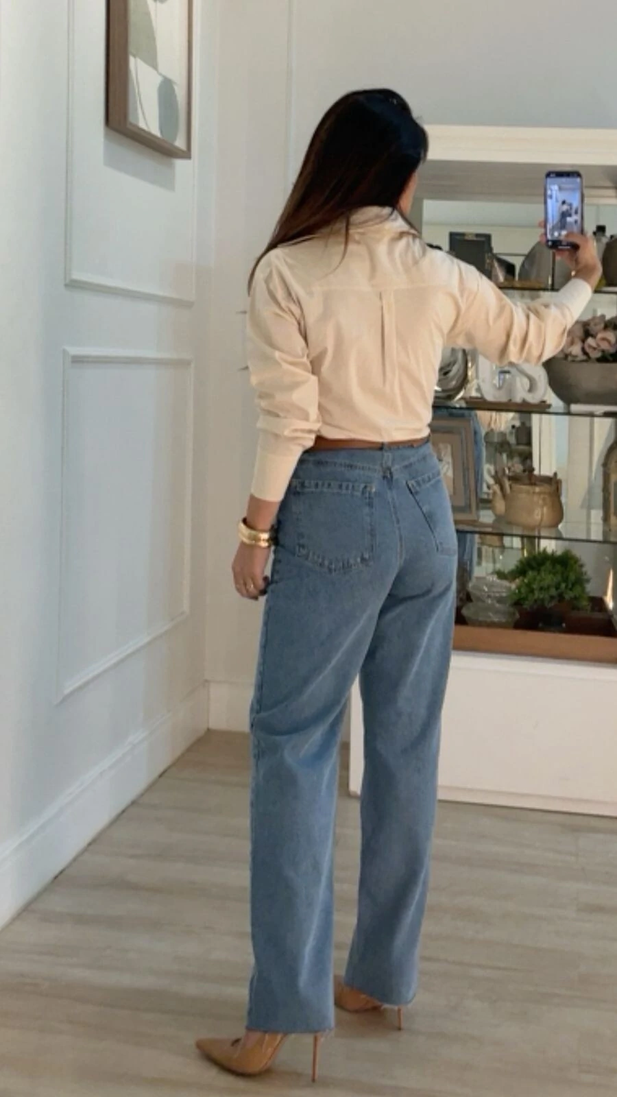 Maxi camisa confeccionada em tricoline. Possui gola, mangas longas, punhos com pregas e botões. Fechamento da peça por botões frontais.