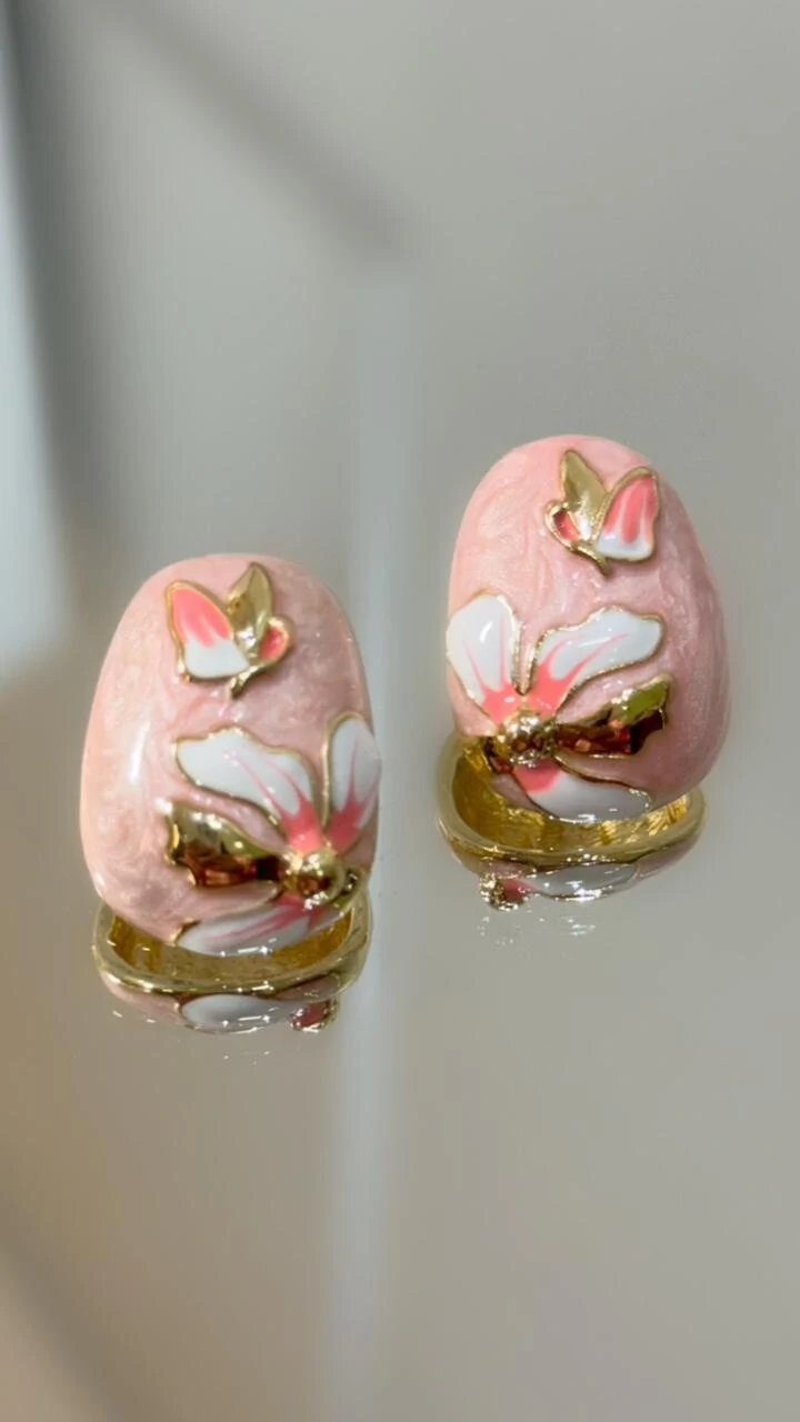 Brinco oval dourado com detalhe texturizado de flor com fechamento por tarraxa.