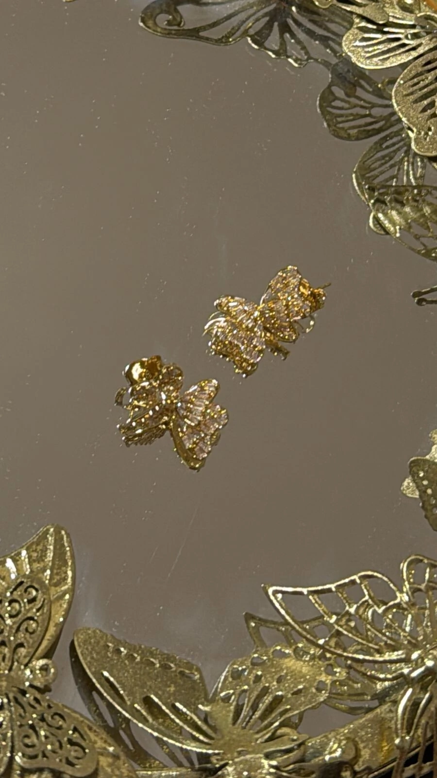Brinco borboleta média maleável cravejado em strass com fecho por tarraxa.