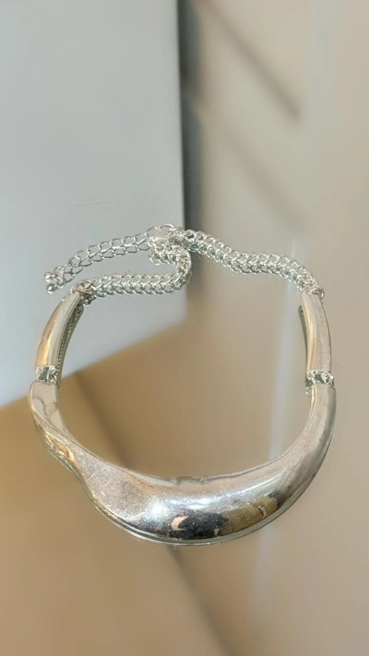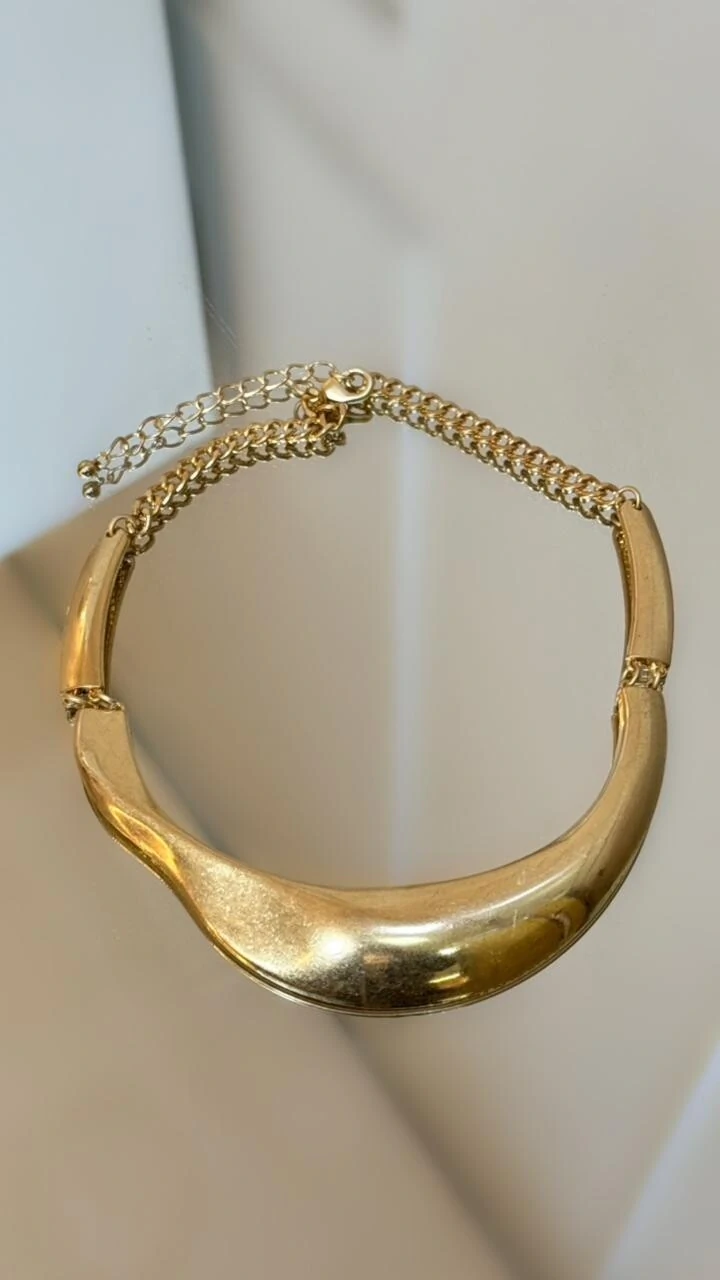 Colar detalhe largo ondulado maleável fecho por gancho. Com extensor.