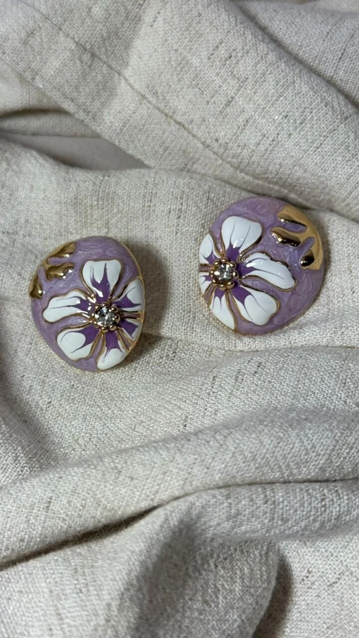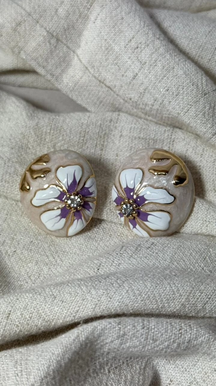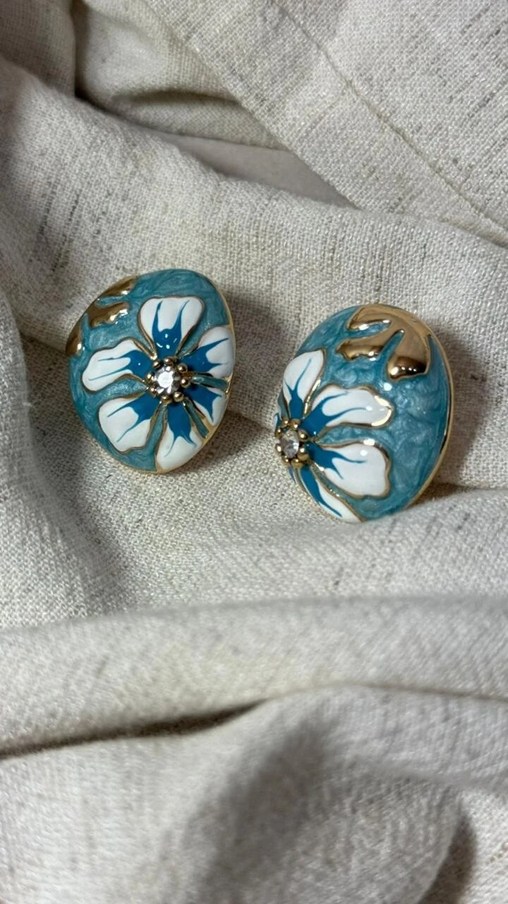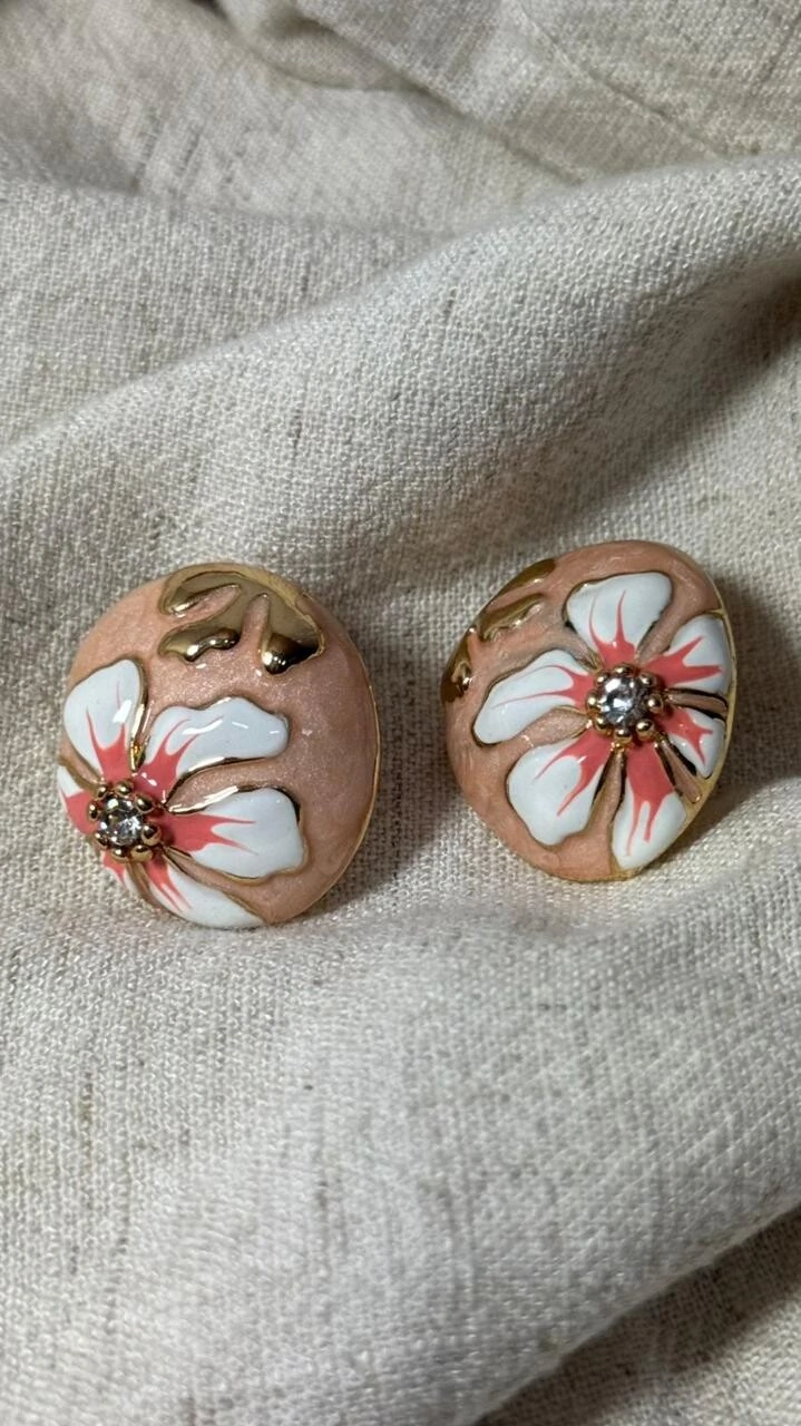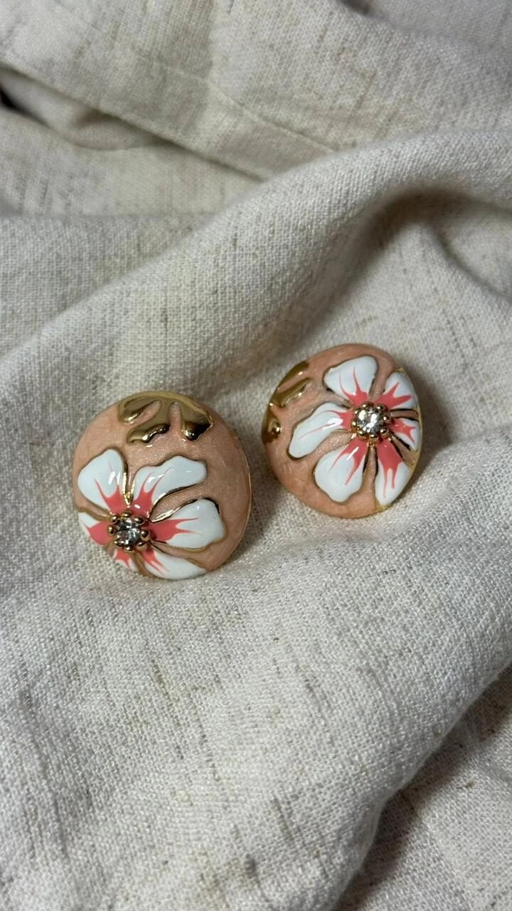 Brinco grande resinado detalhe de algas e flor resinada com strass com fechamento por tarraxa.