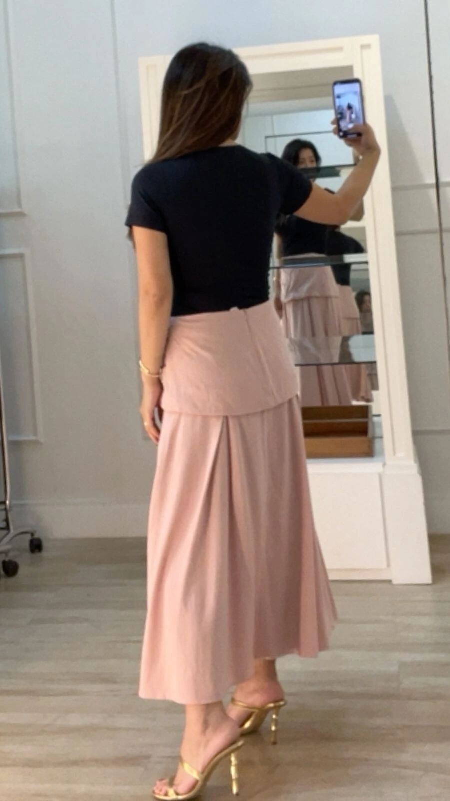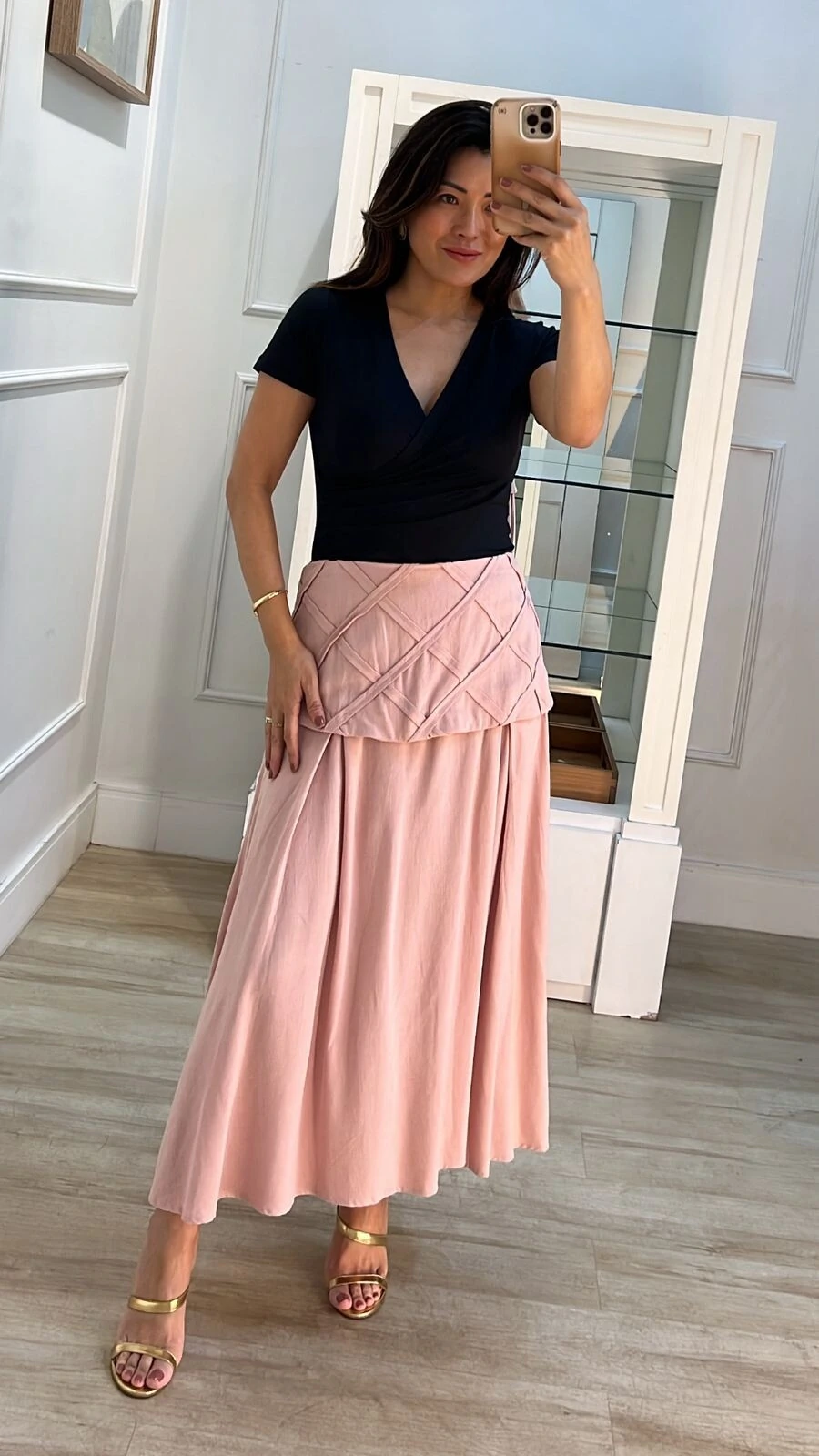 Saia Midi Pala Larga Com Elástico Franzido Virginia Bolsos Frontais