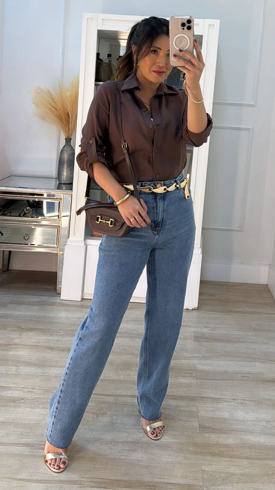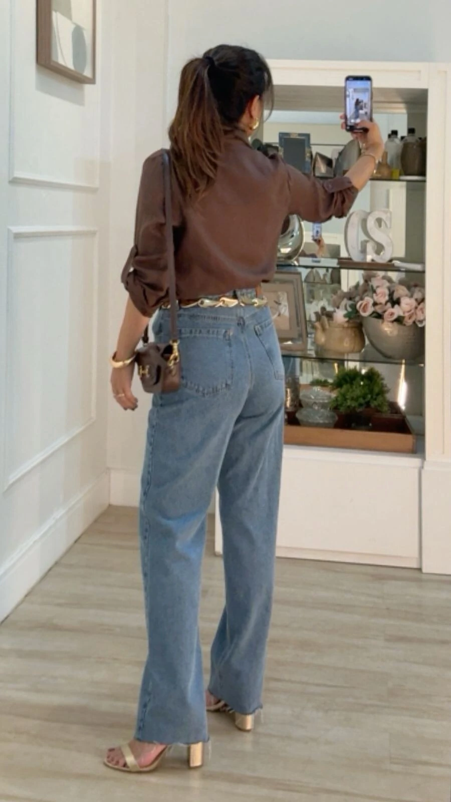 Camisa confeccionado em linho. Possui gola, mangas longas com martingalê nos punhos, punhos largos, fendas laterais, pesponto, fechamento frontal da peça e dos punhos por botões.