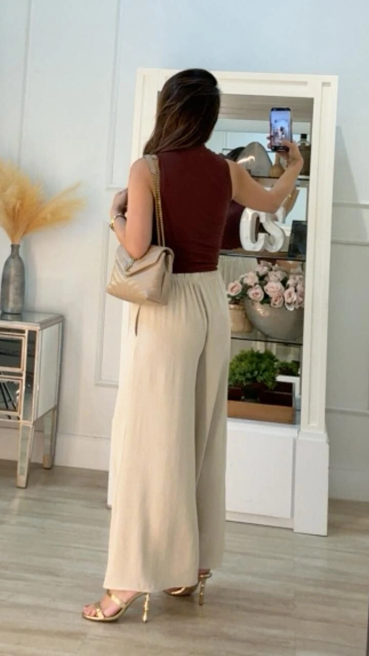 Blusa regata cropped confeccionada em malha canelada. Possui gola alta, alças largas cavadas, e pesponto.