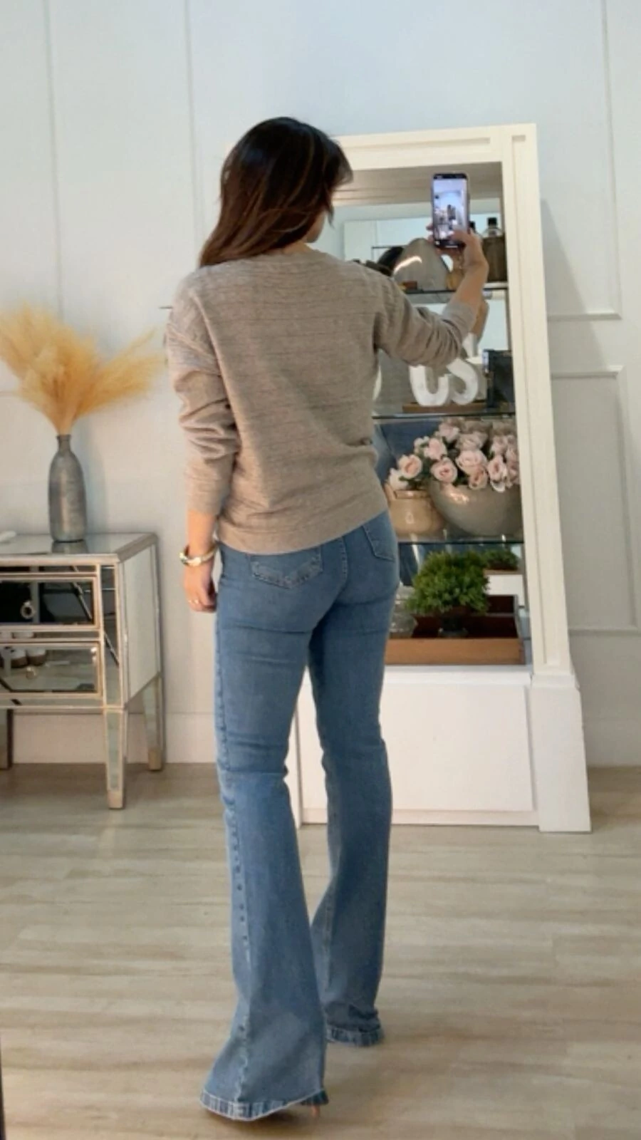 Blusa ampla confeccionada em tricot. Possui gola careca, mangas longas, nervuras horizontais com mini entremeios, canelado na gola, punhos e barrado.