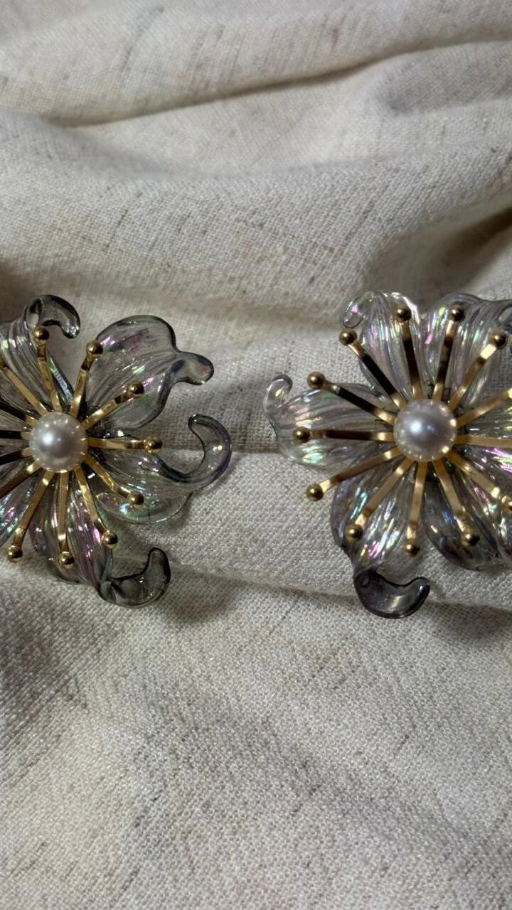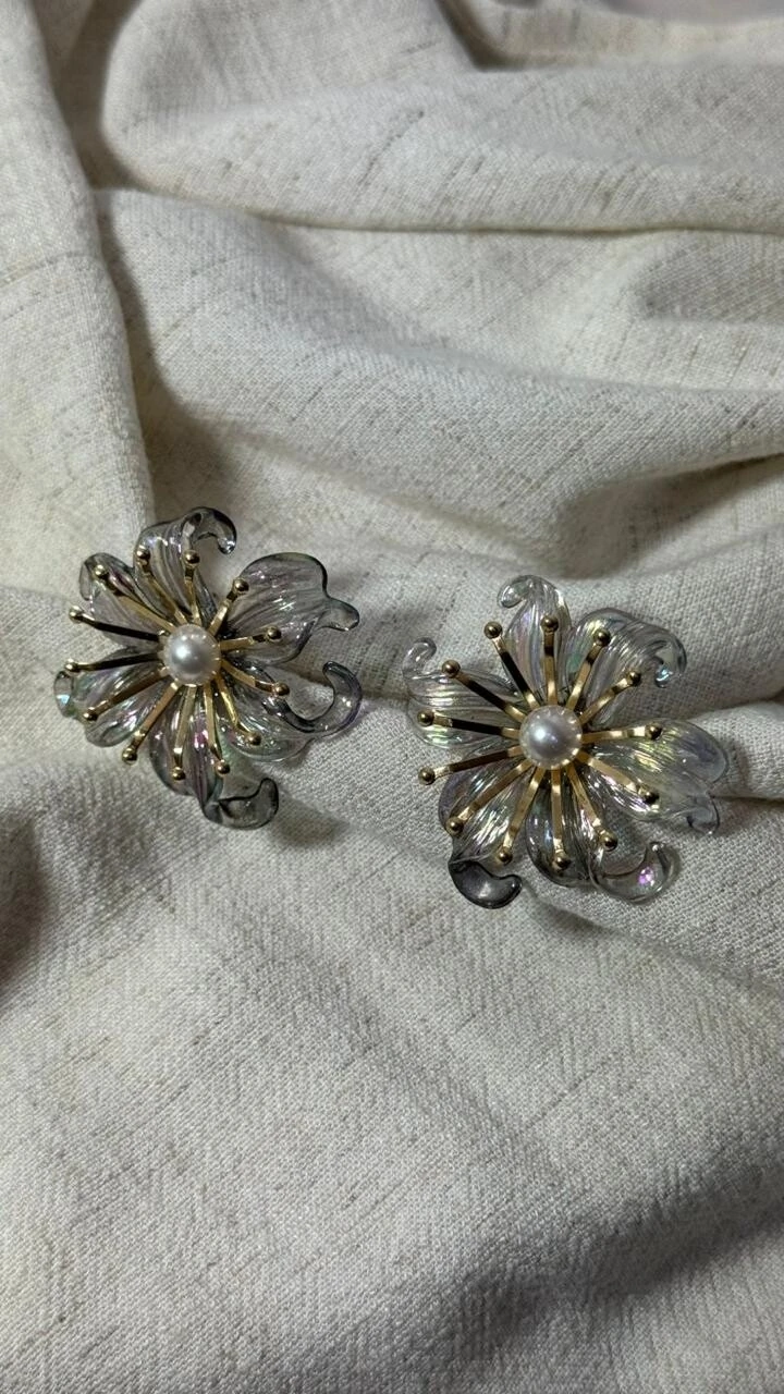 -49%Brinco Flor Pequena Bicolor Miolo De Pérola