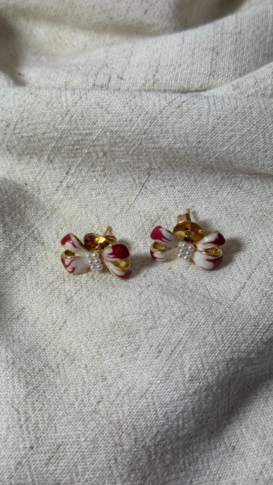 -49%Brinco Flor Pequena Bicolor Miolo De Pérola