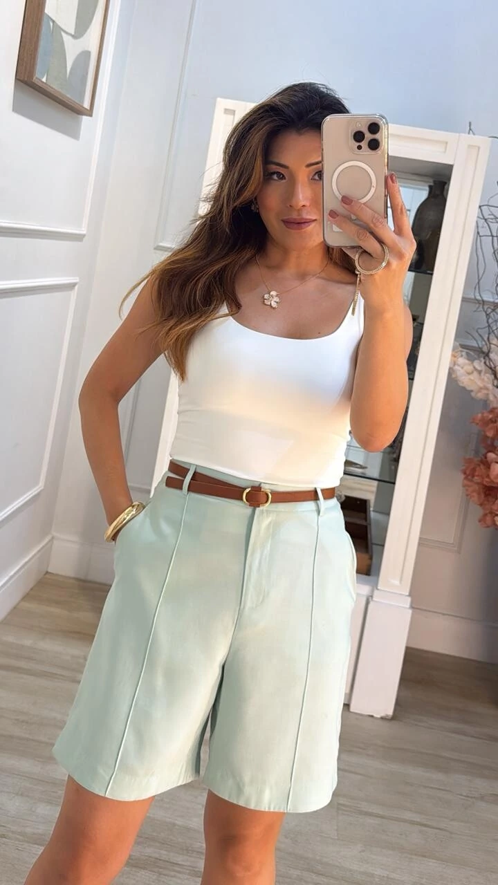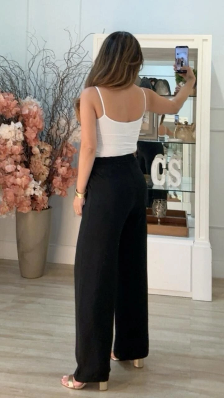 Blusa regata confeccionada em suplex. Possui tecido duplo frontal, decote em u, alças finas, e pesponto.
