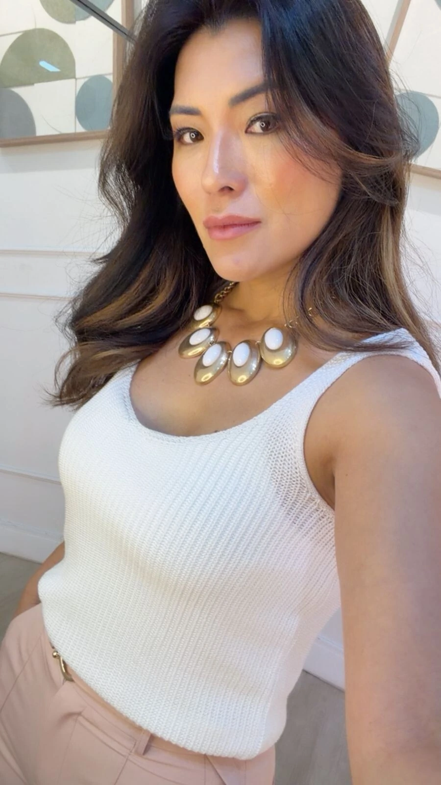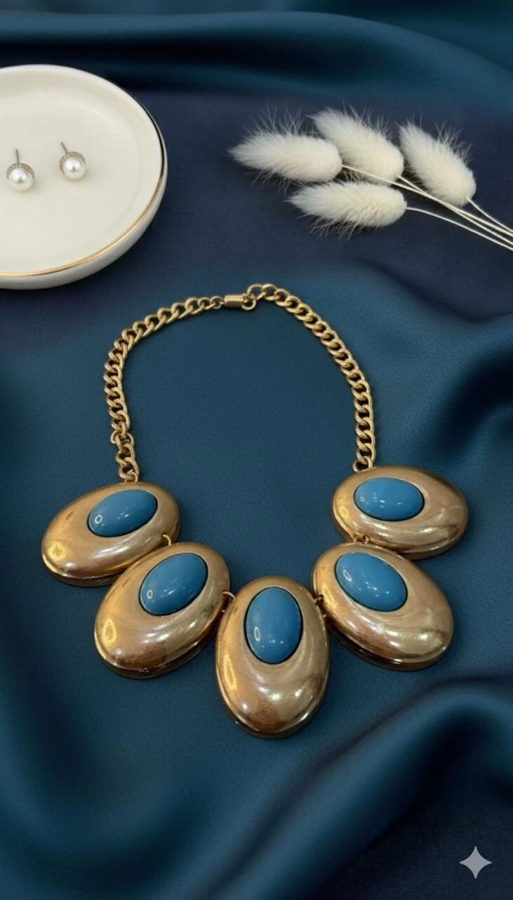 Colar dourado com pingentes ovais detalhe resinado fecho por gancho. Com extensor.