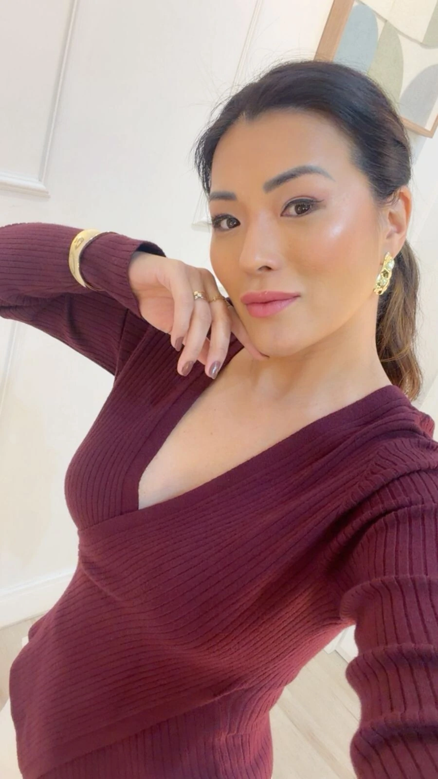 Blusa Tricot Modal Decote V Transpassado Flavia Barrado Assimétrico