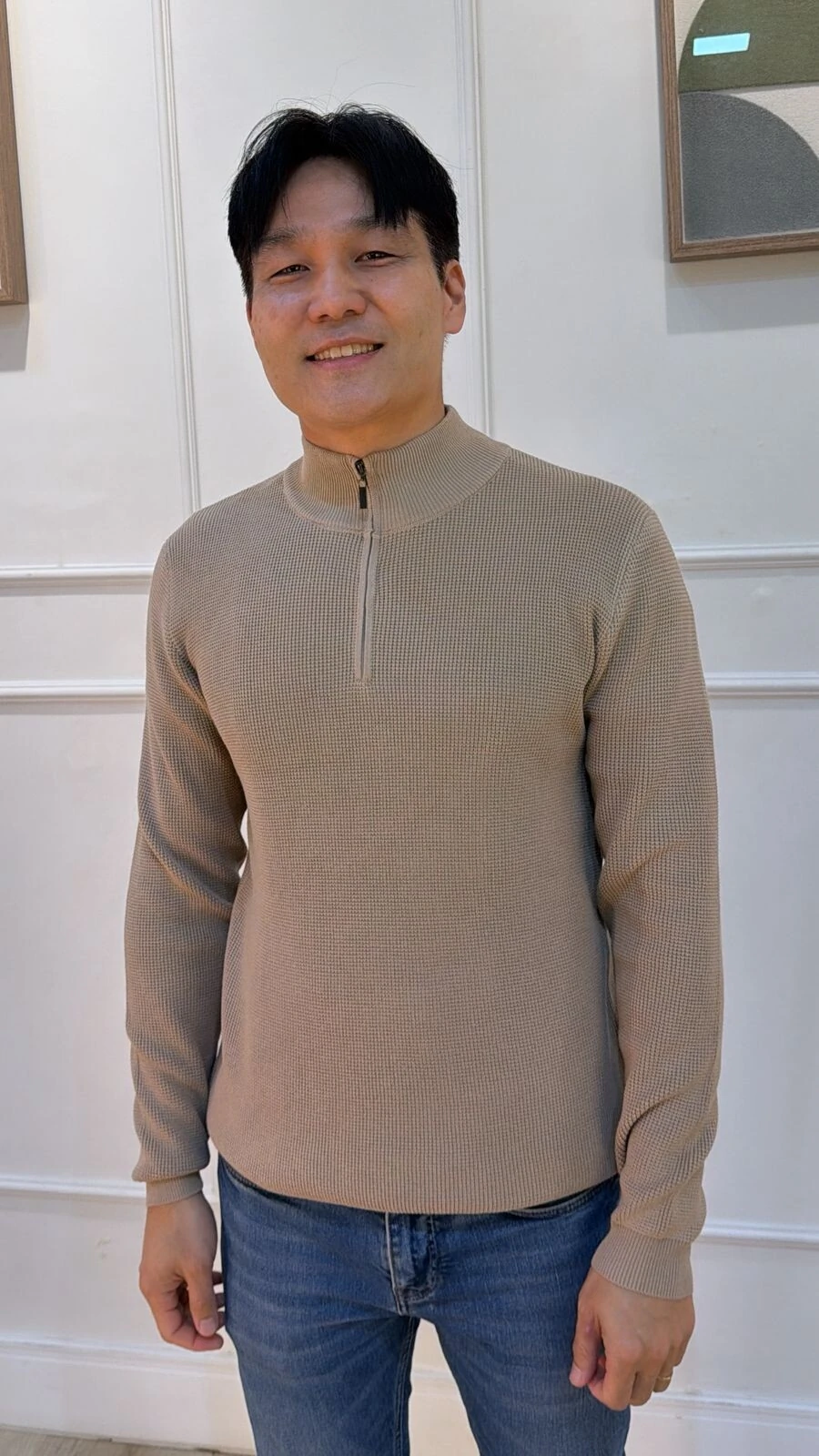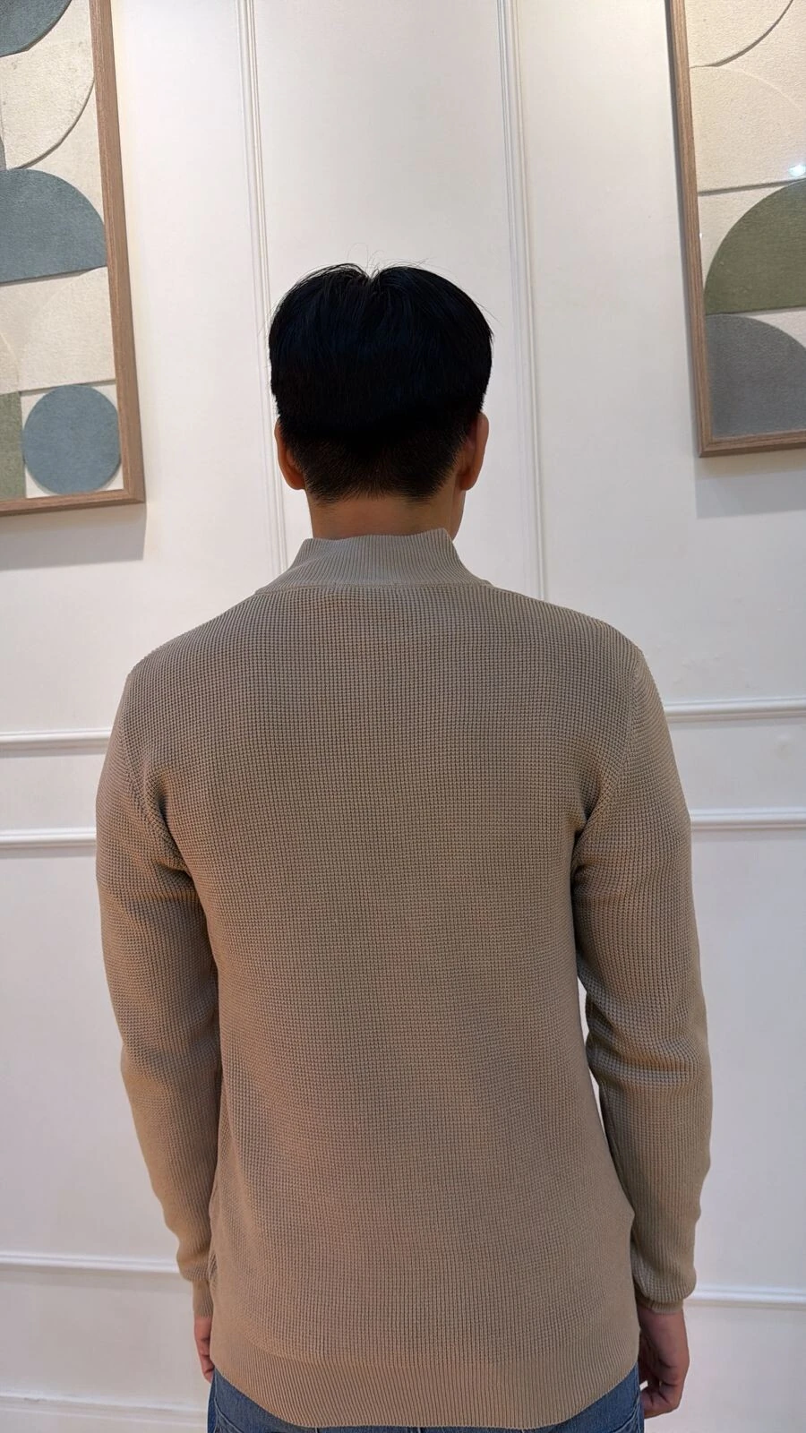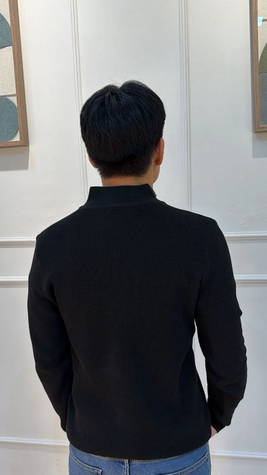 Blusa cacharrel confeccionada em tricot. Possui mangas longas, zíper frontal funcional, canelado na gola, punhos e barrado. Modelagem ampla.