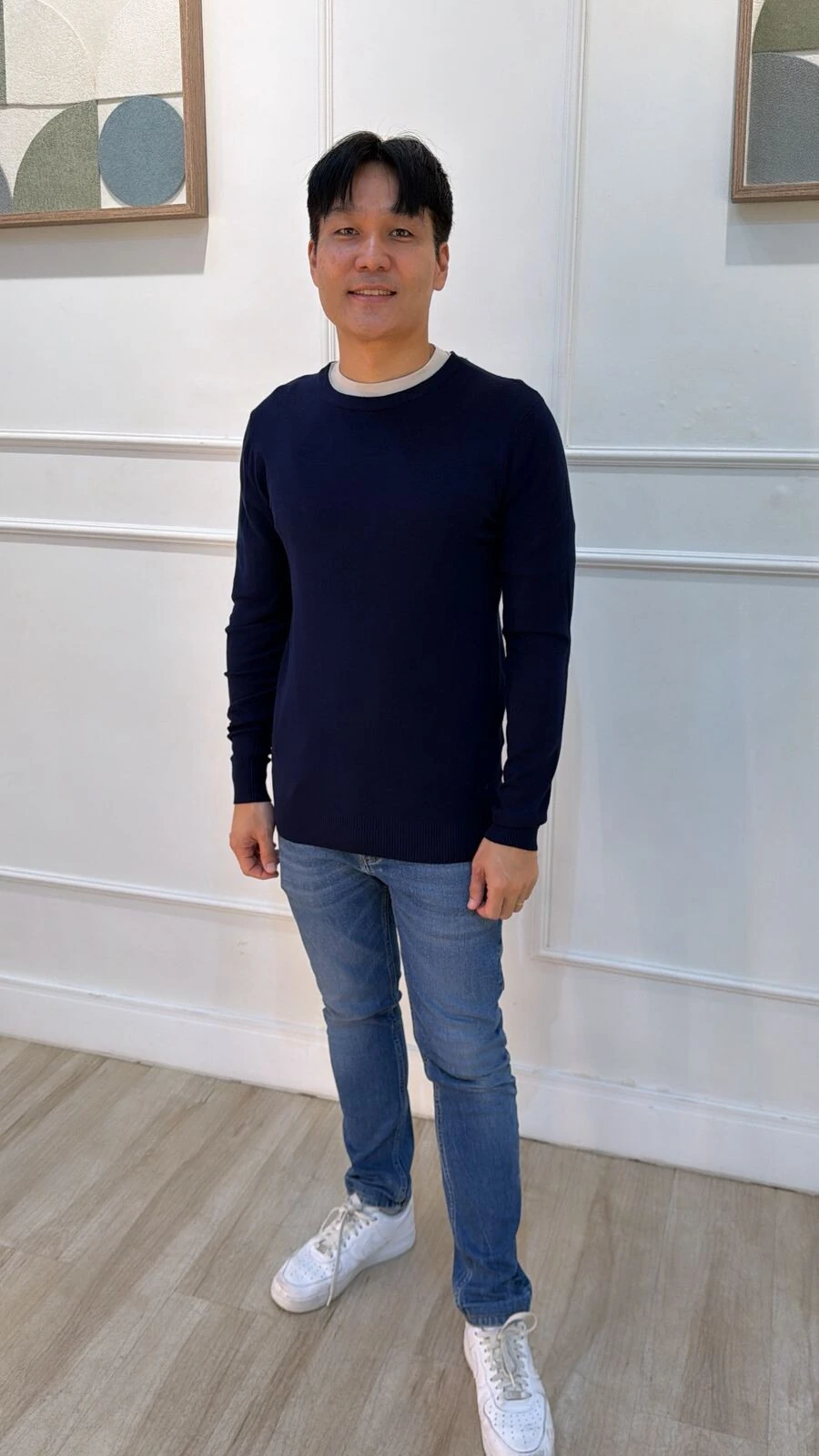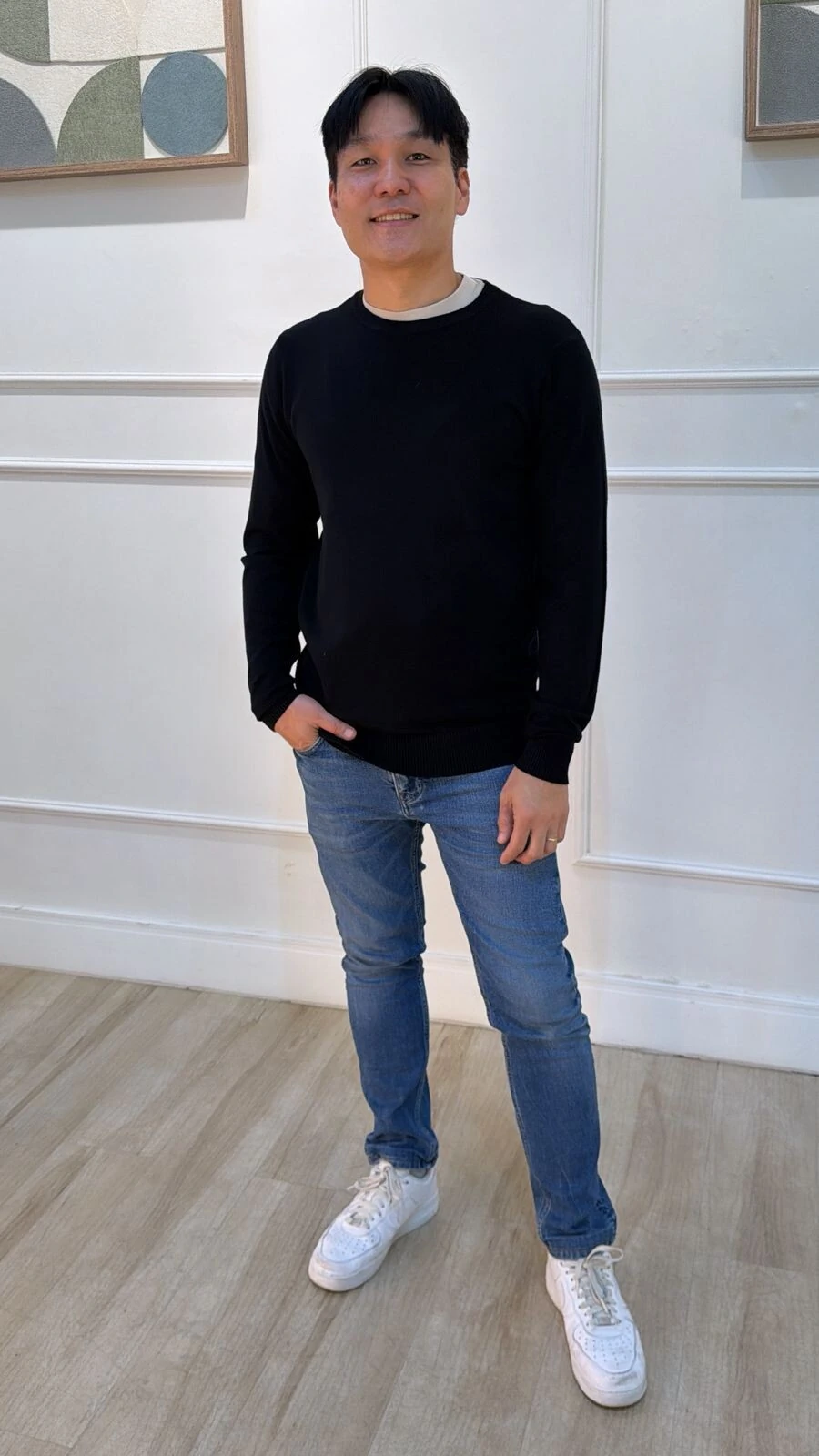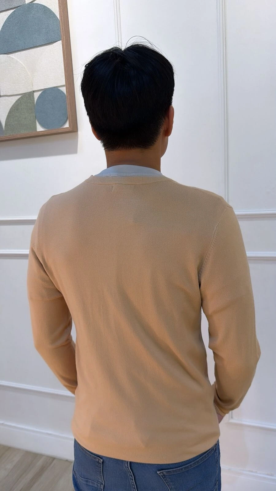 Blusa básica confeccionada em tricot. Possui gola careca, mangas longas, canelado na gola, punhos e barrado.