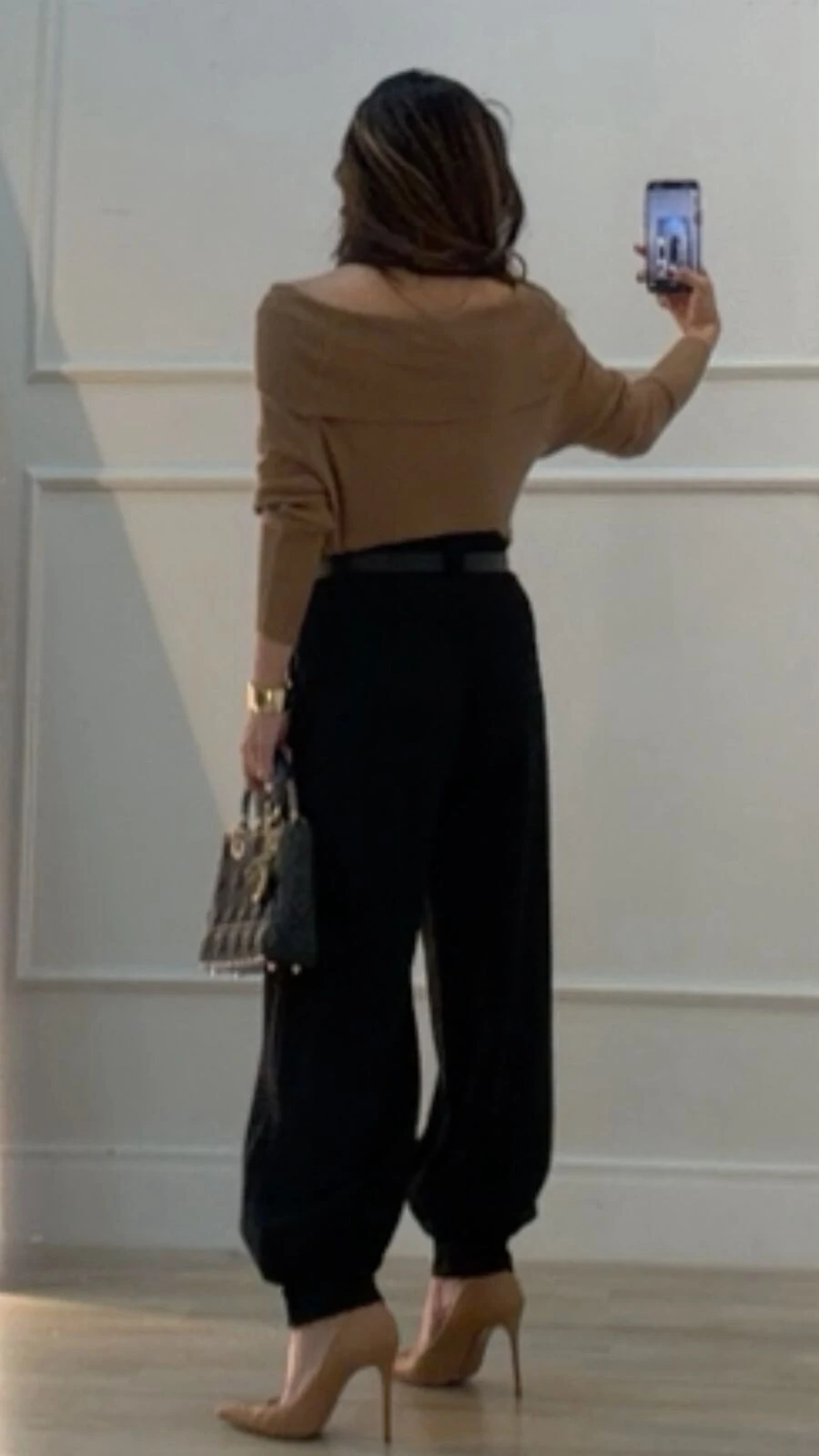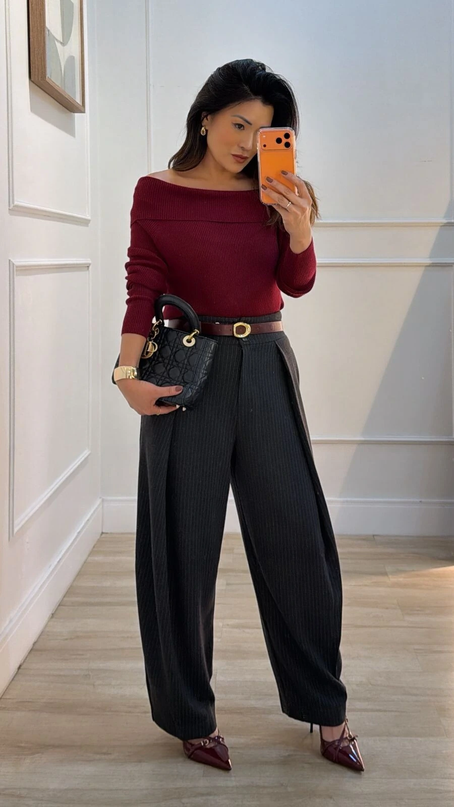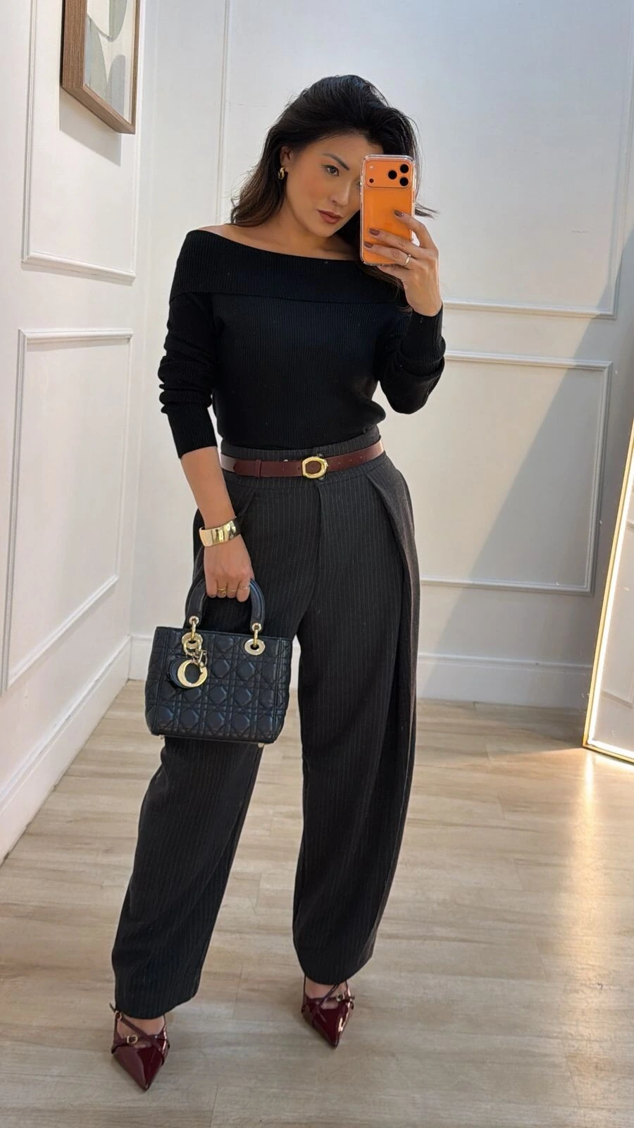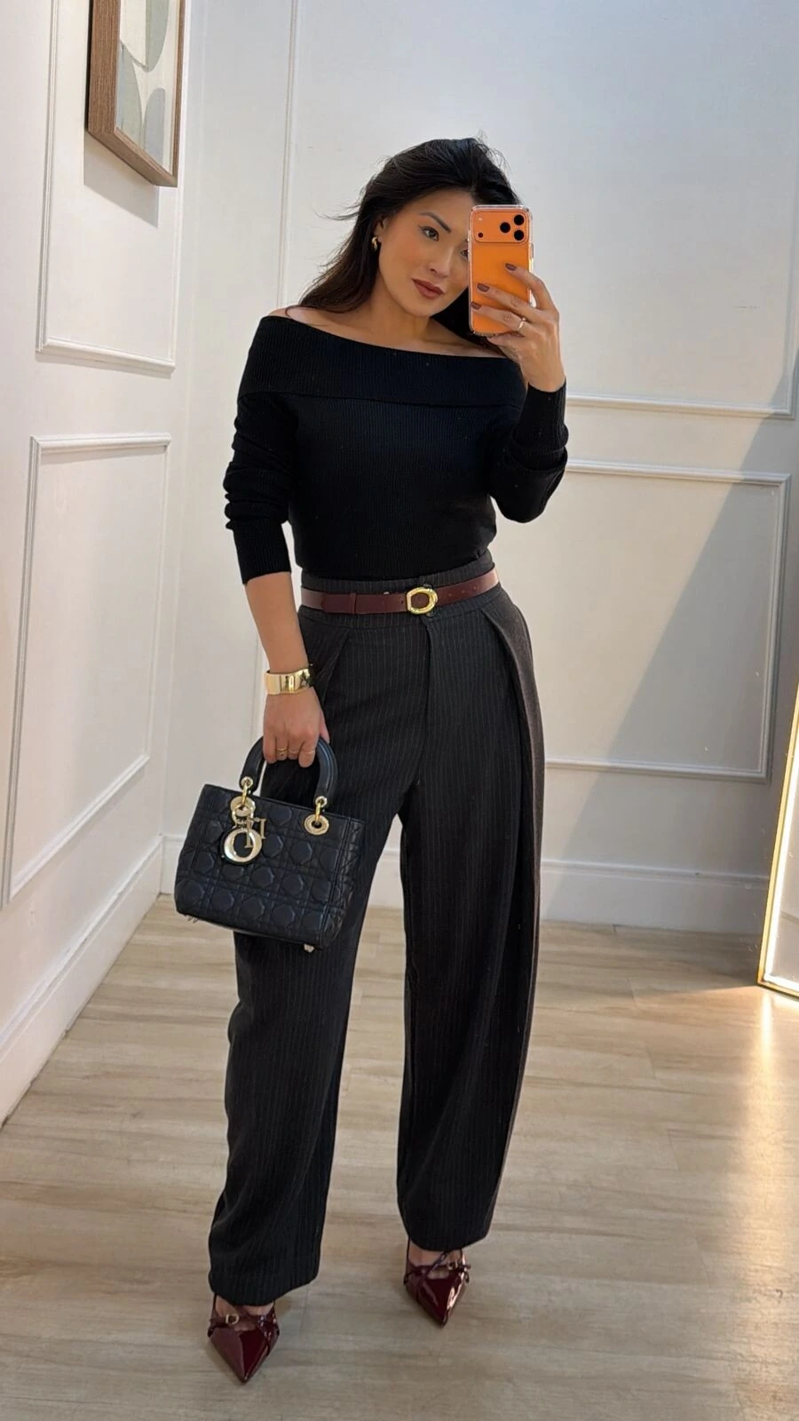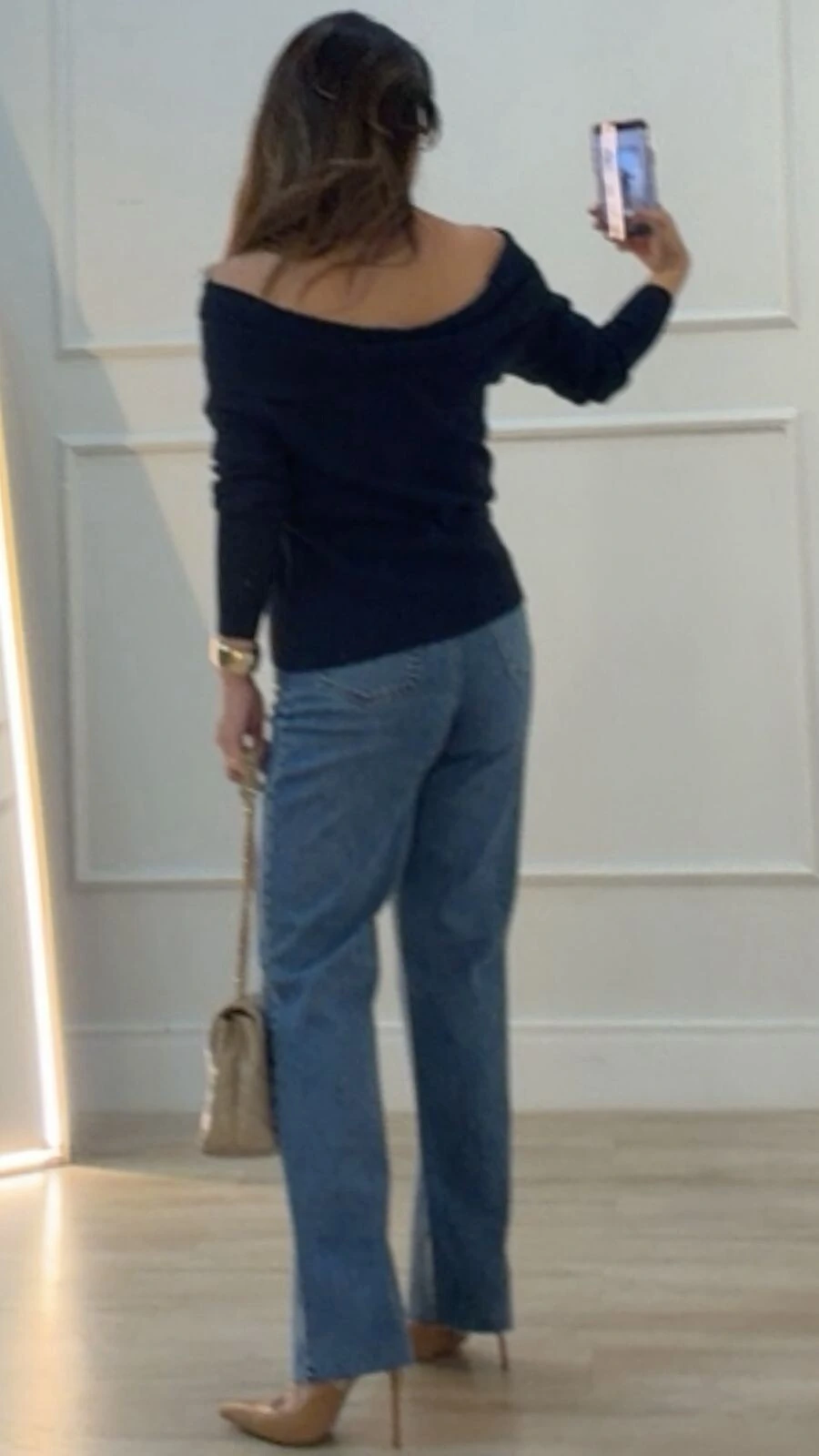 Blusa confeccionada em tricot canelado. Possui ombro à ombro, e mangas longas.