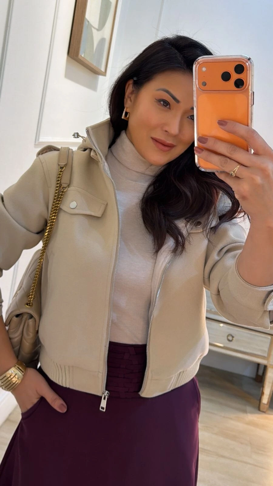 Jaqueta curta confeccionada em lã batida. Possui forro, capuz removível com reguladores, martingale nos ombros, mangas longas, punhos com botão de pressão, bolsos fake superiores, bolsos faca no inferior da peça e barrado canelado. Fechamento por zíper frontal.