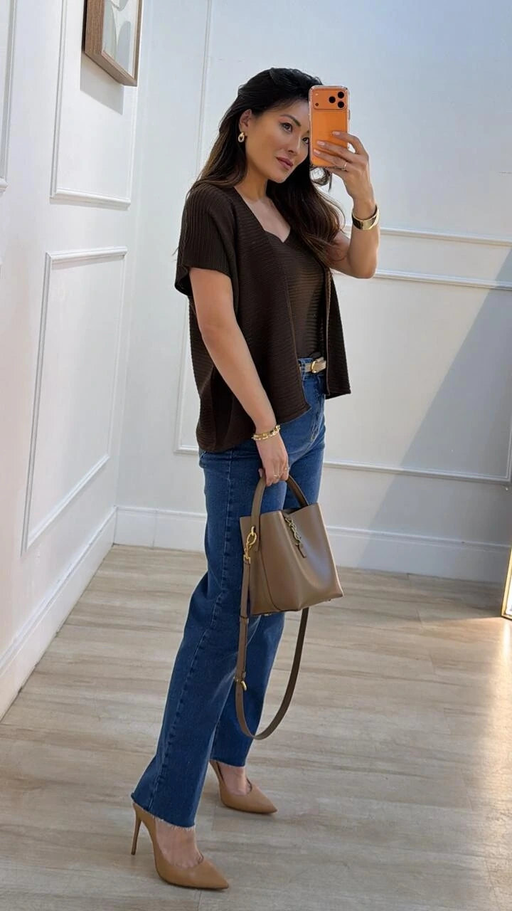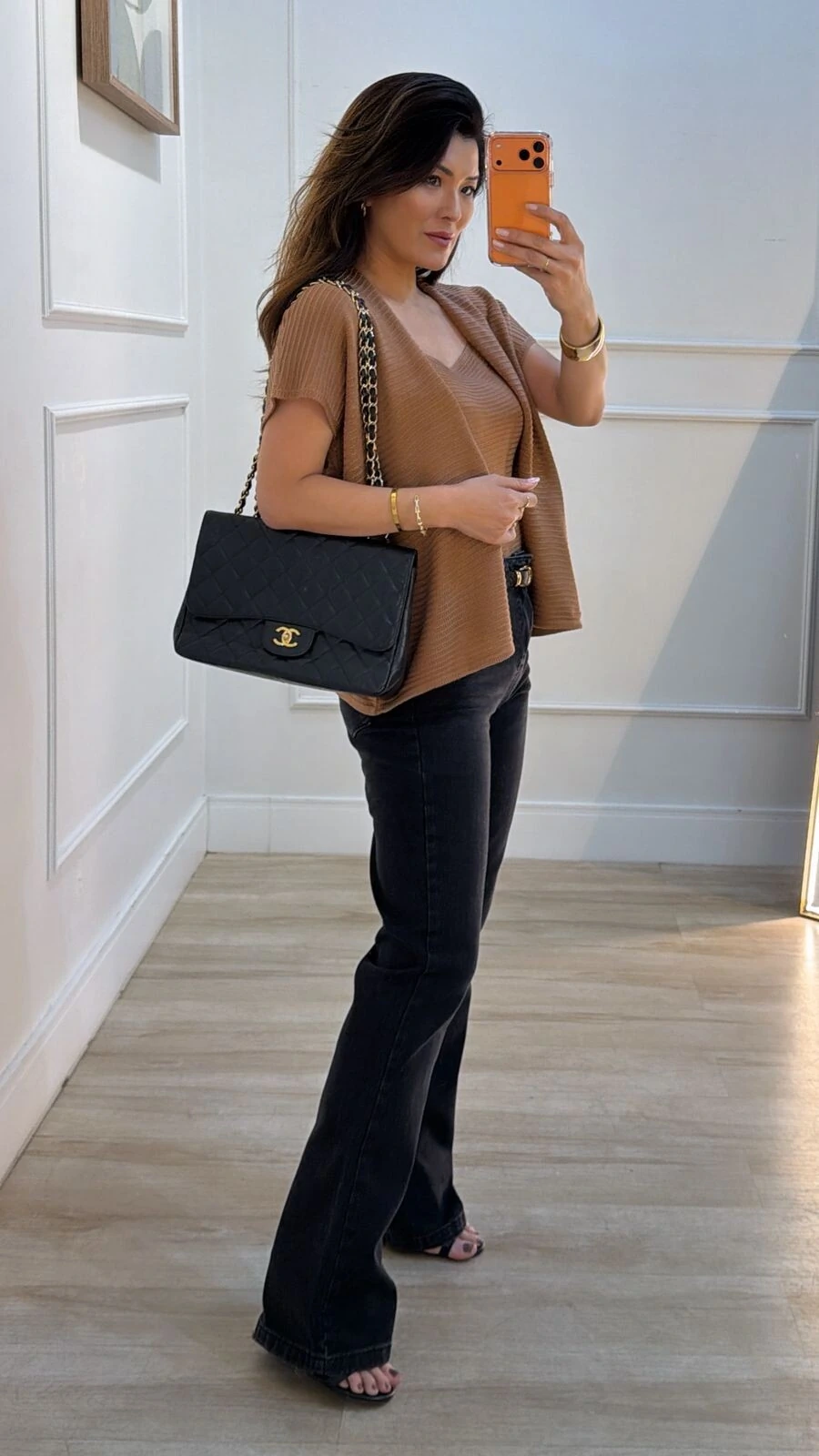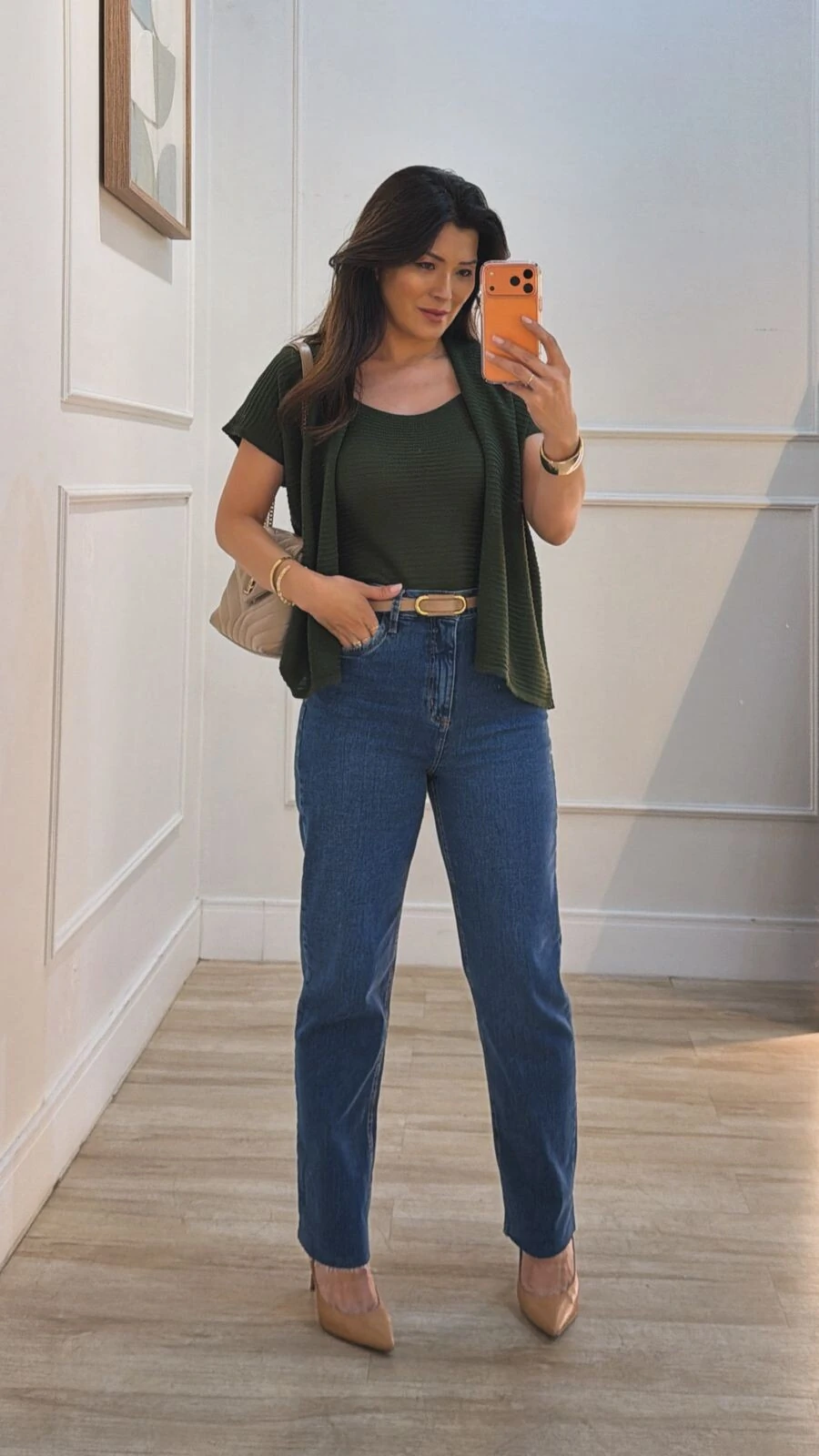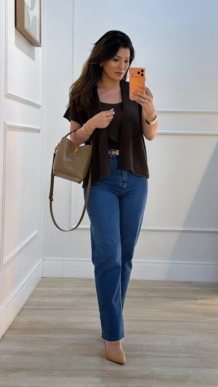 Twin set confeccionado em tricot kimono e regata. Kimono possui modelagem ampla, alças largas, textura vertical na parte posterior, punhos e gola. Regata possui alças largas, e decote reto.