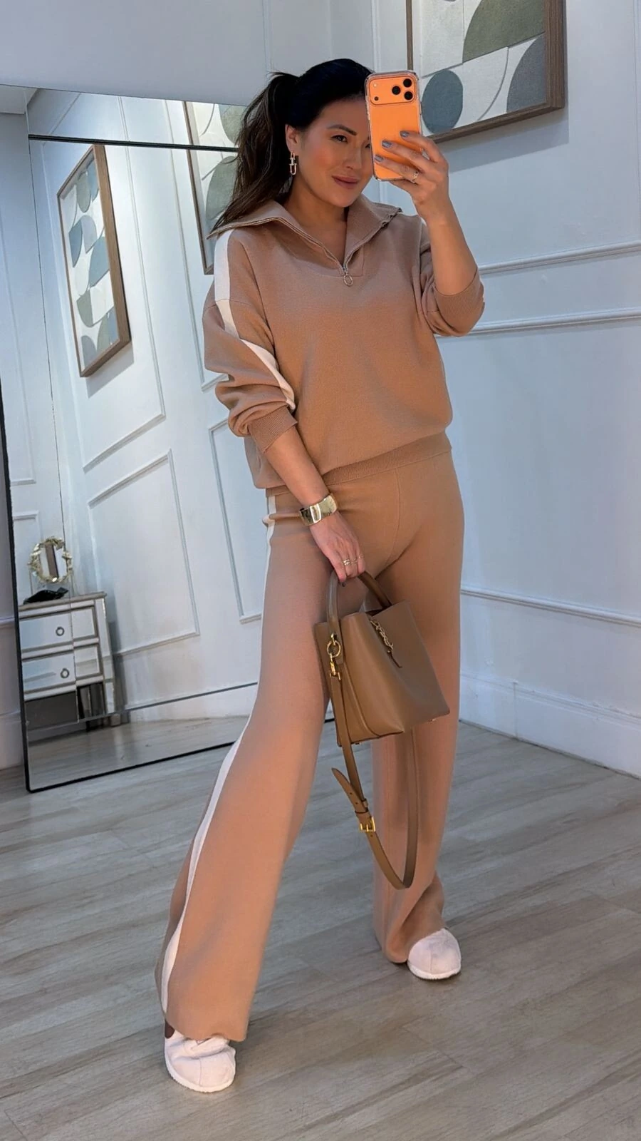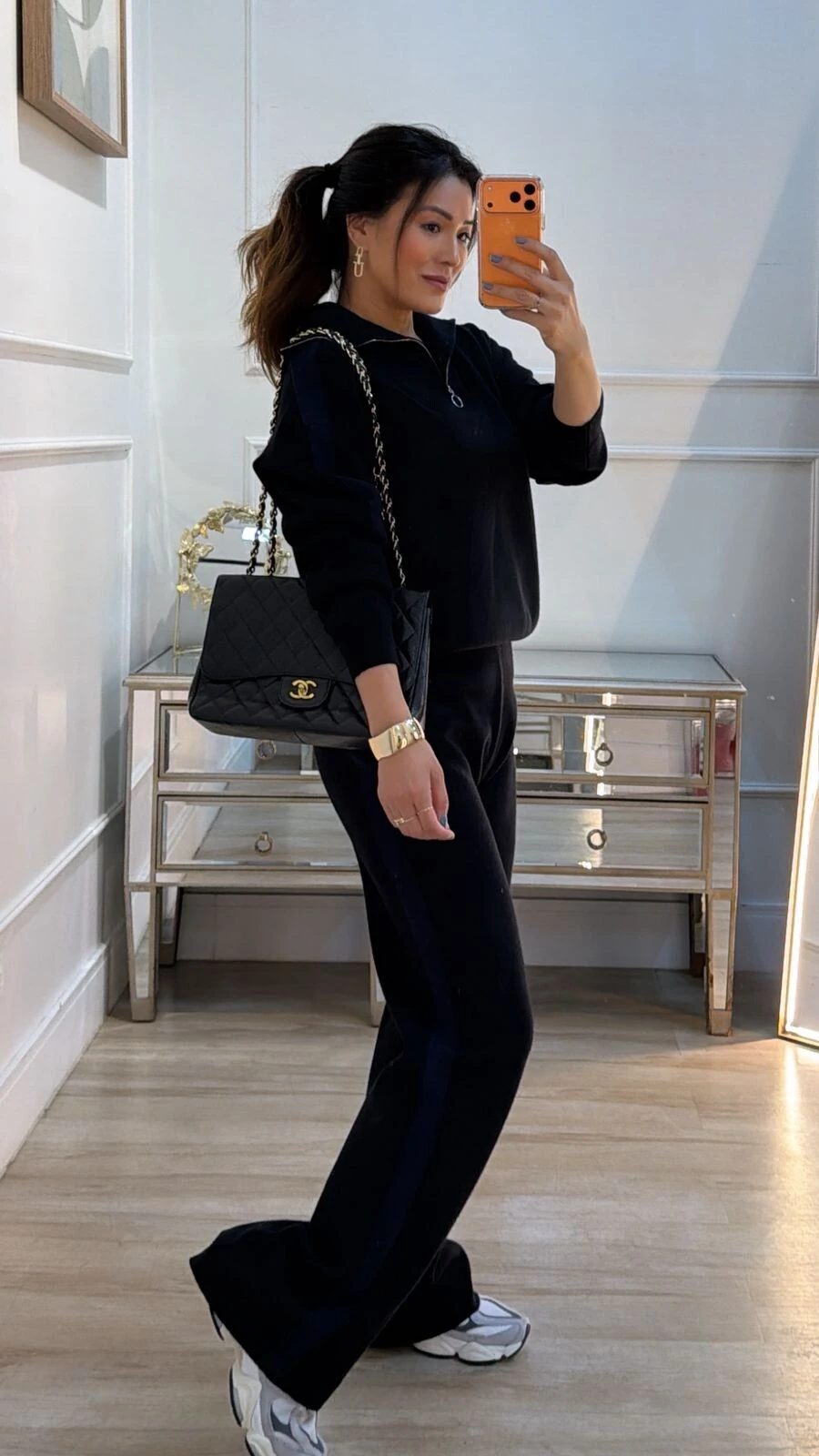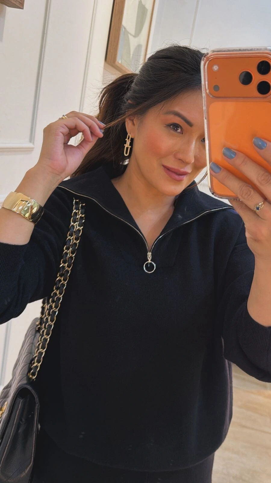 Suéter confeccionado em tricot. Possui gola alta com zíper prata, mangas longas, detalhe de faixa nos ombros e mangas, gola, punhos e barrado canelados.
