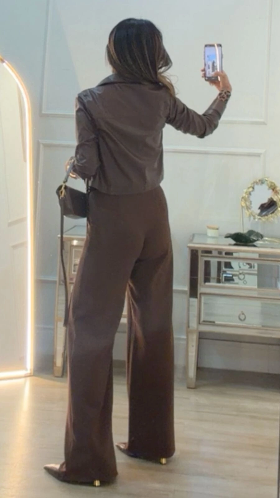 Calça Pantalona Alfaiataria Cecilia Cinto Fivela Larga Dourada